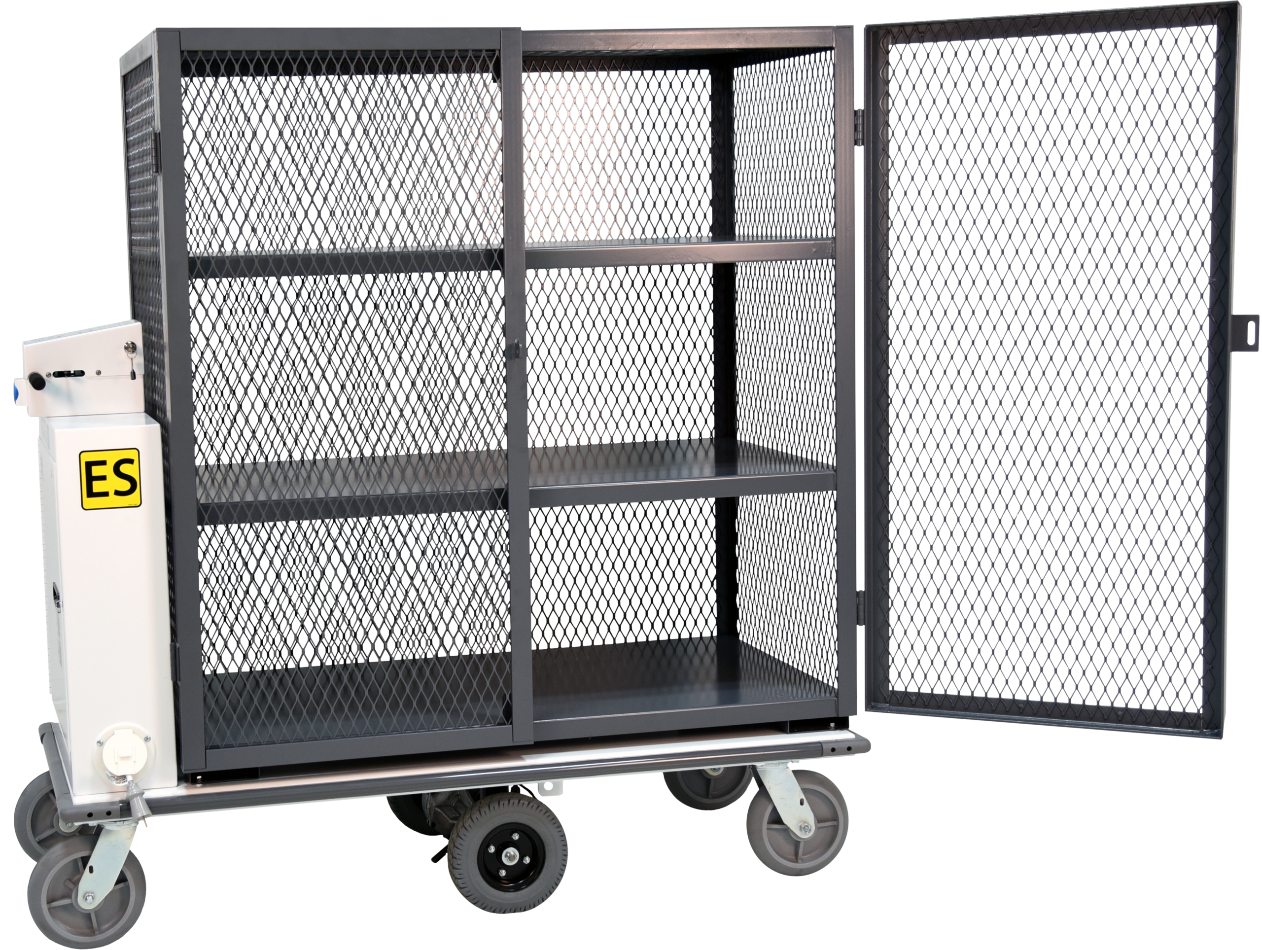 PHS West’s line of motorized carts have the option of standard and custom container options. These options range from cabinets, cages, tank racks and removable rails. Custom orders based on your specific requirements can be accommodated.