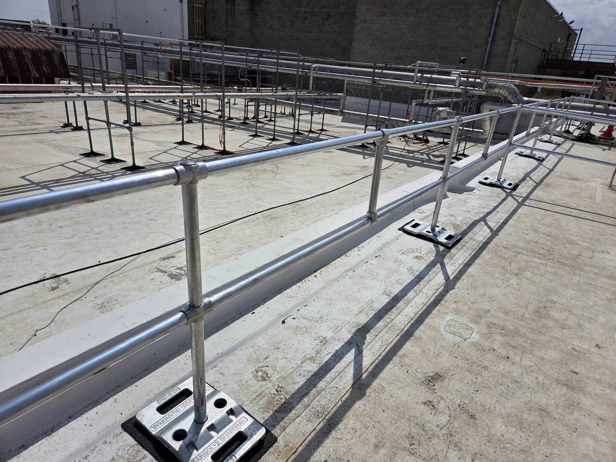 These rooftop safety systems are wide enough to allow safe and efficient movement of tools and equipment. Compared to other products on the market, they require considerably less time to install, saving money and eliminating the need for on-site welding or cutting.