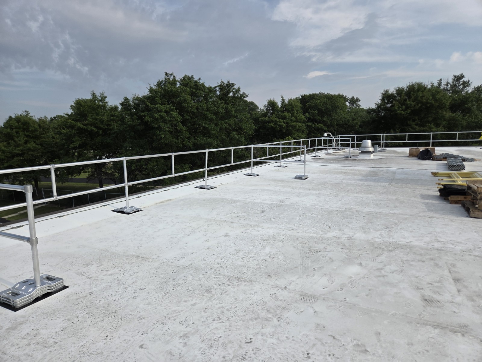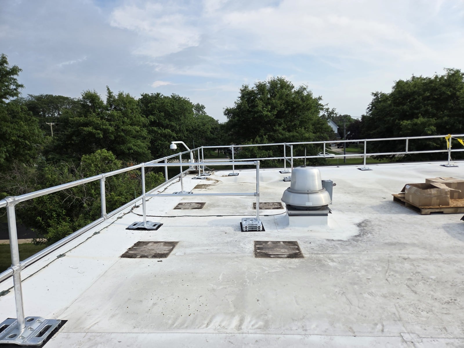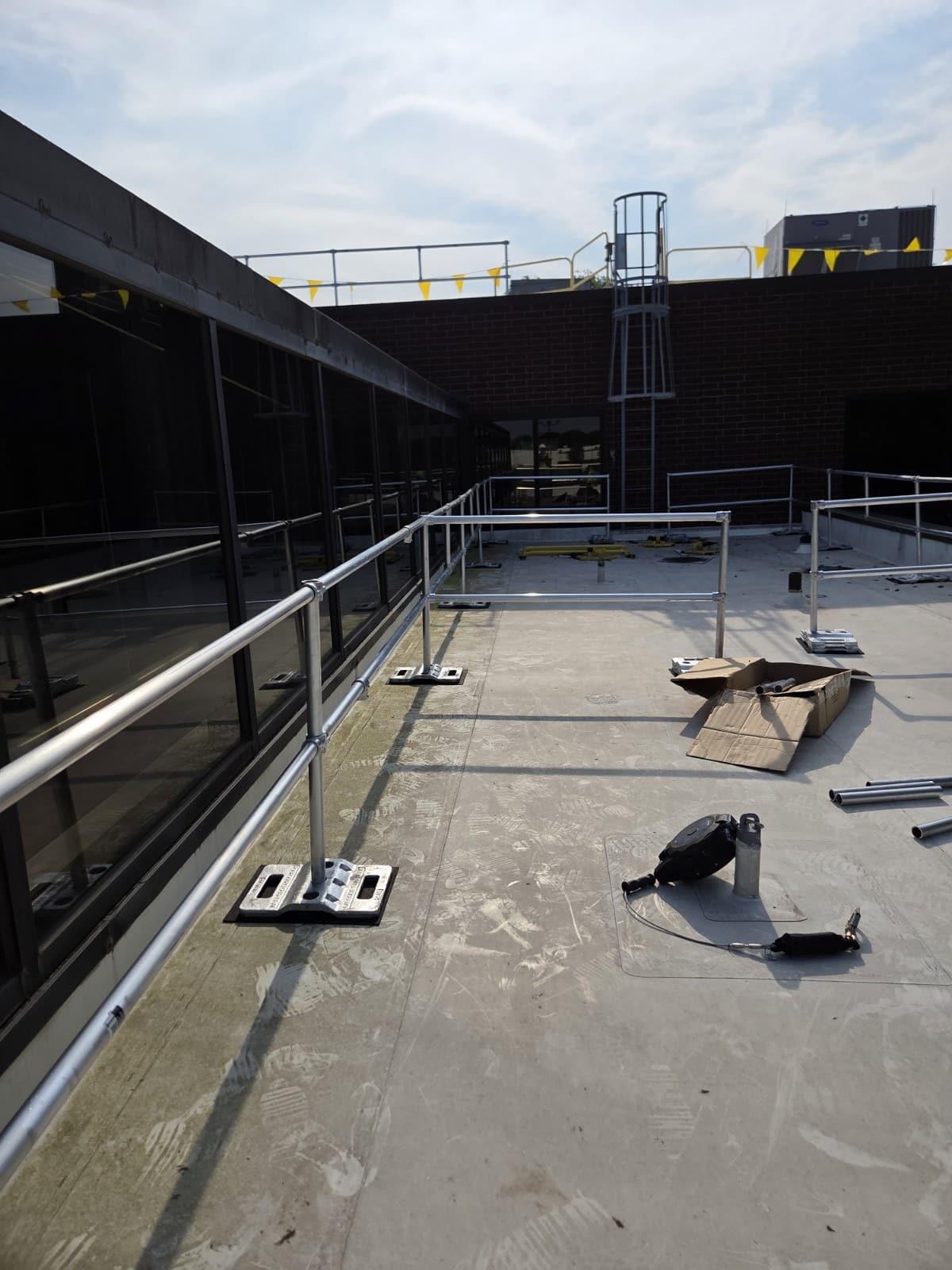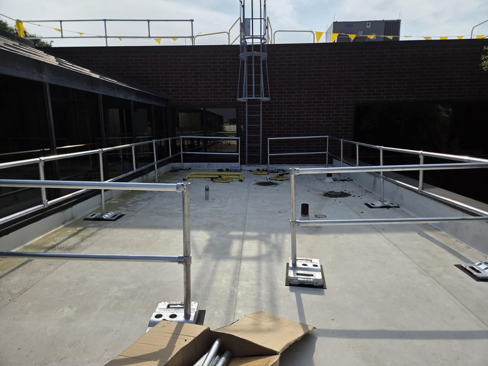 Our team engineered a custom rooftop guardrail system designed to fit the unique layout and safety needs of this facility.